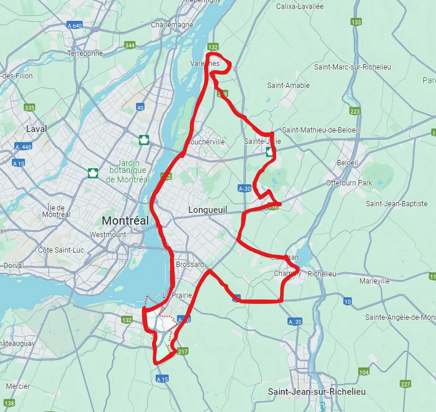 Boucherville, Carignan, Chambly, Saint-Basile-le-Grand, Saint-Bruno, Sainte-Julie et Varennes